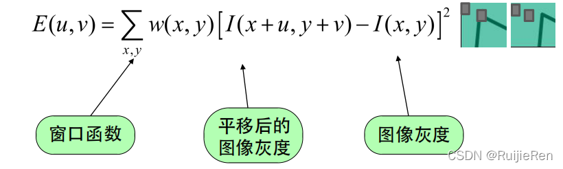 ?首先,将图像窗口平移[u,v]产生灰度变化的自相关函数如下:
