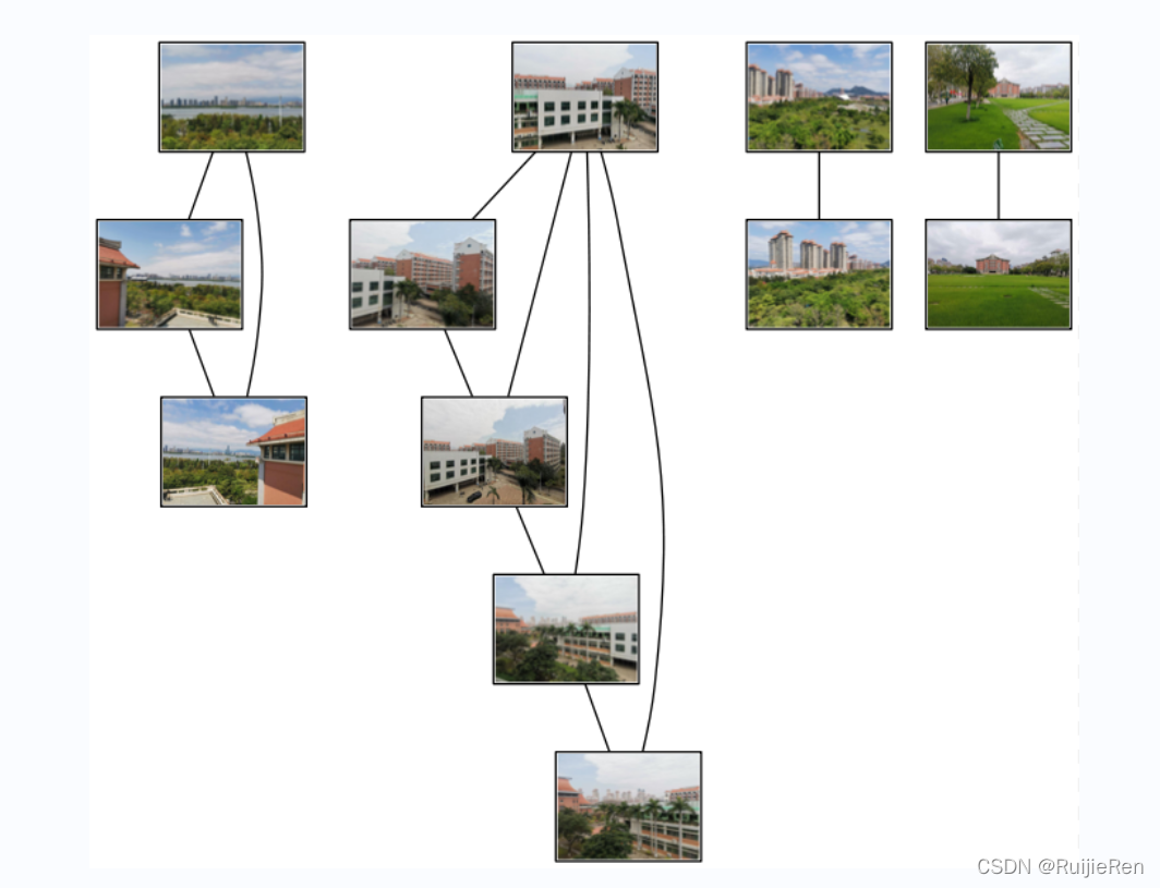 我们首先通过图像间是否具有匹配的局部描述子来定义图像间的连接,然后可视化这些连接情况。为了完成可视化,我们可以在图中显示这些图像,图的边代表连接。因此将使用pydot工具包和GraphViz图形库。安装顺序:graphviz--->graphviz软件包--->pydot。具体安装看:教程+Graphviz配置。