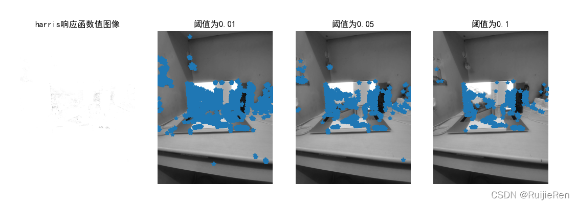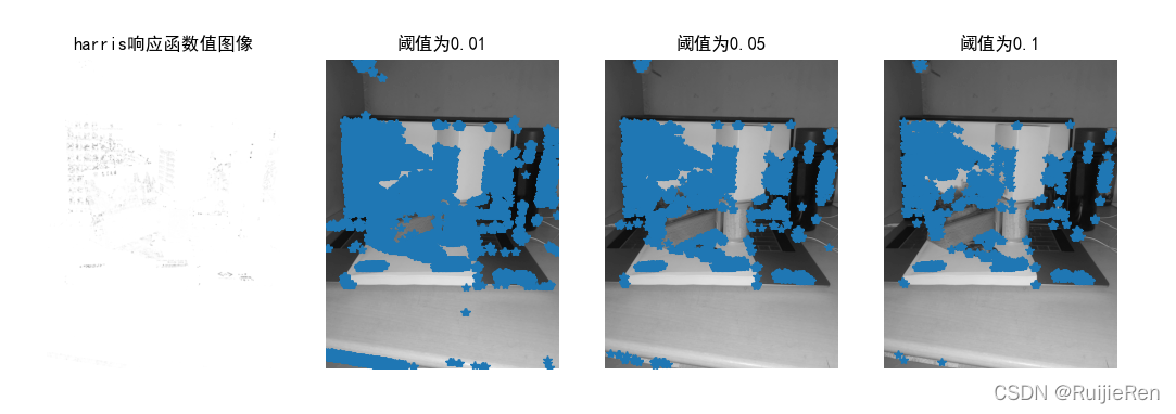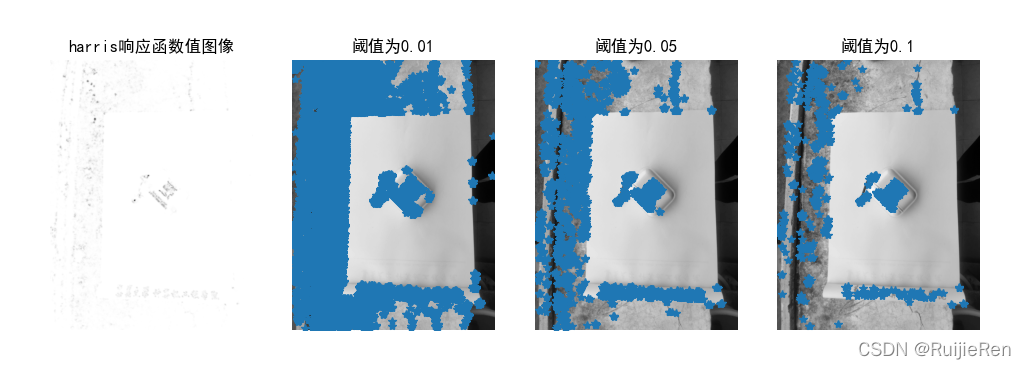 Harris角点检测器的响应函数会返回像素值为 Harris 响应函数值的一幅图像。