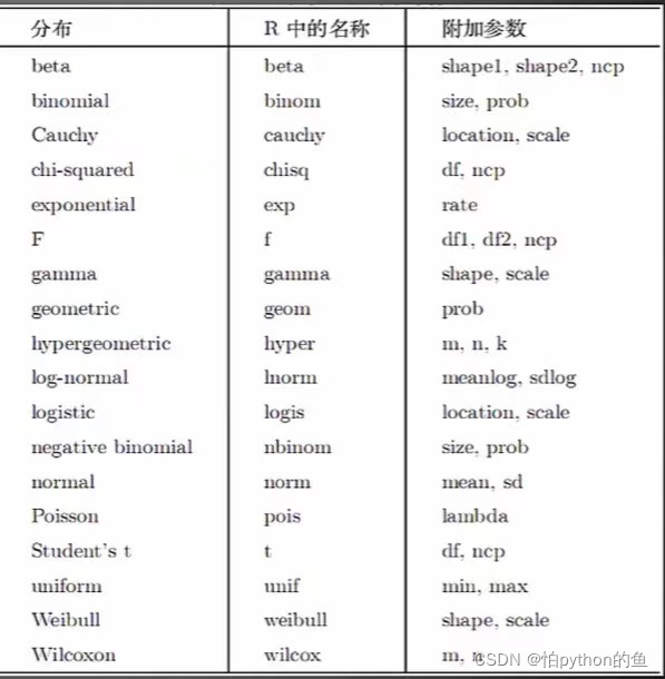 r:产生相同分布的随机数(random)