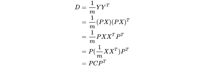 - 之所以对角化,因为对角化之后非对角上的元素都是0,达到去噪声的目的。对角化后的协方差矩阵,对角线上较小的新方差对应的就是那些该去掉的维度。所以我们只取那些含有较大能量(特征值)的维度,其余的就舍掉,即去冗余。