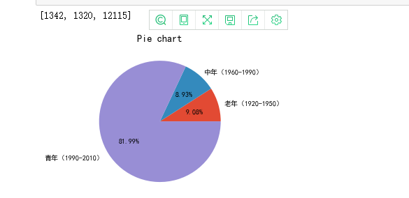 3.3 将年龄划分为老年(1920-1950)、中年(1960-1990)、青年(1990-2010),绘制一个饼图