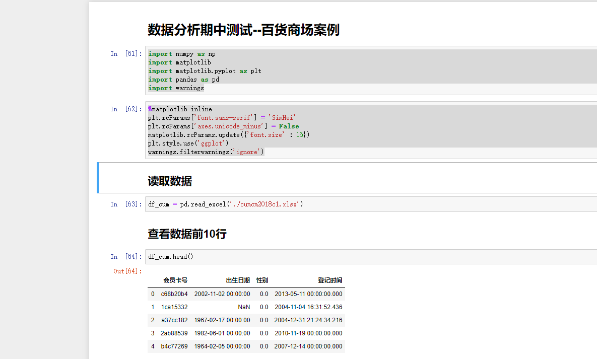 Python数据分析期中测试–百货商场案例, 使用pandas
