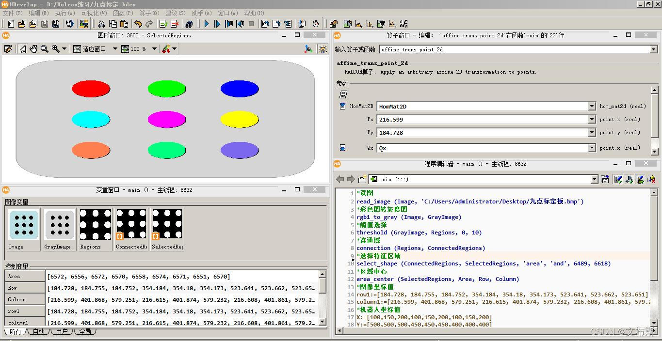 ????????标定的意义,就是将机器人坐标系和相机坐标系建立联系。通过九点标定的方式,可将这种联系量化成数学表达式。