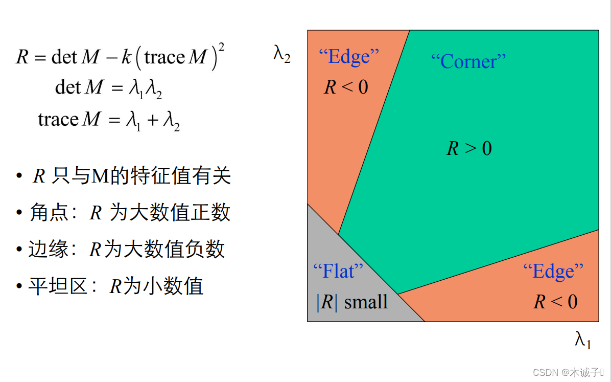 - 对于每个窗口,都计算其对应的一个角点响应函数R;