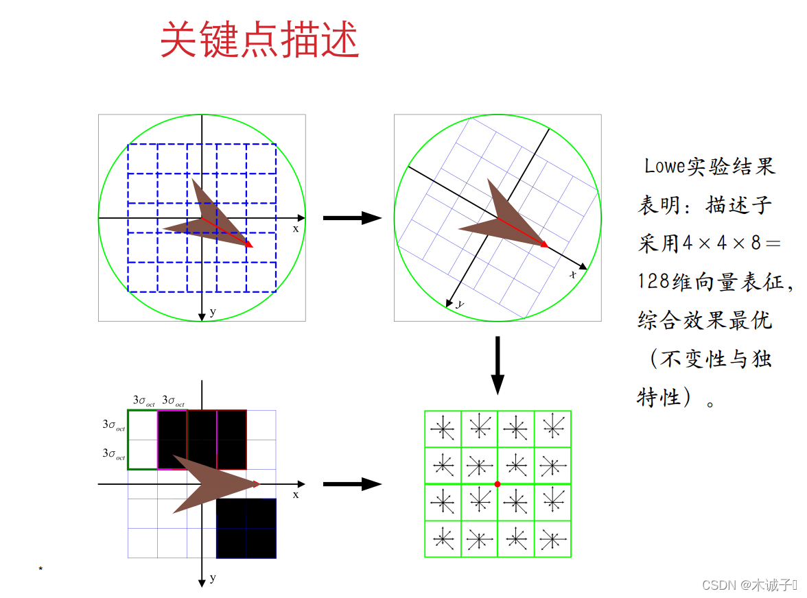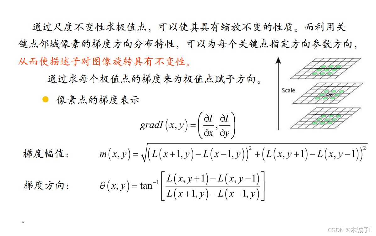 - 对于图像灰度的仿射变化具有部分的不变性,由于仅仅使用了图像的一介导数,对于图像灰度平移变化不变;