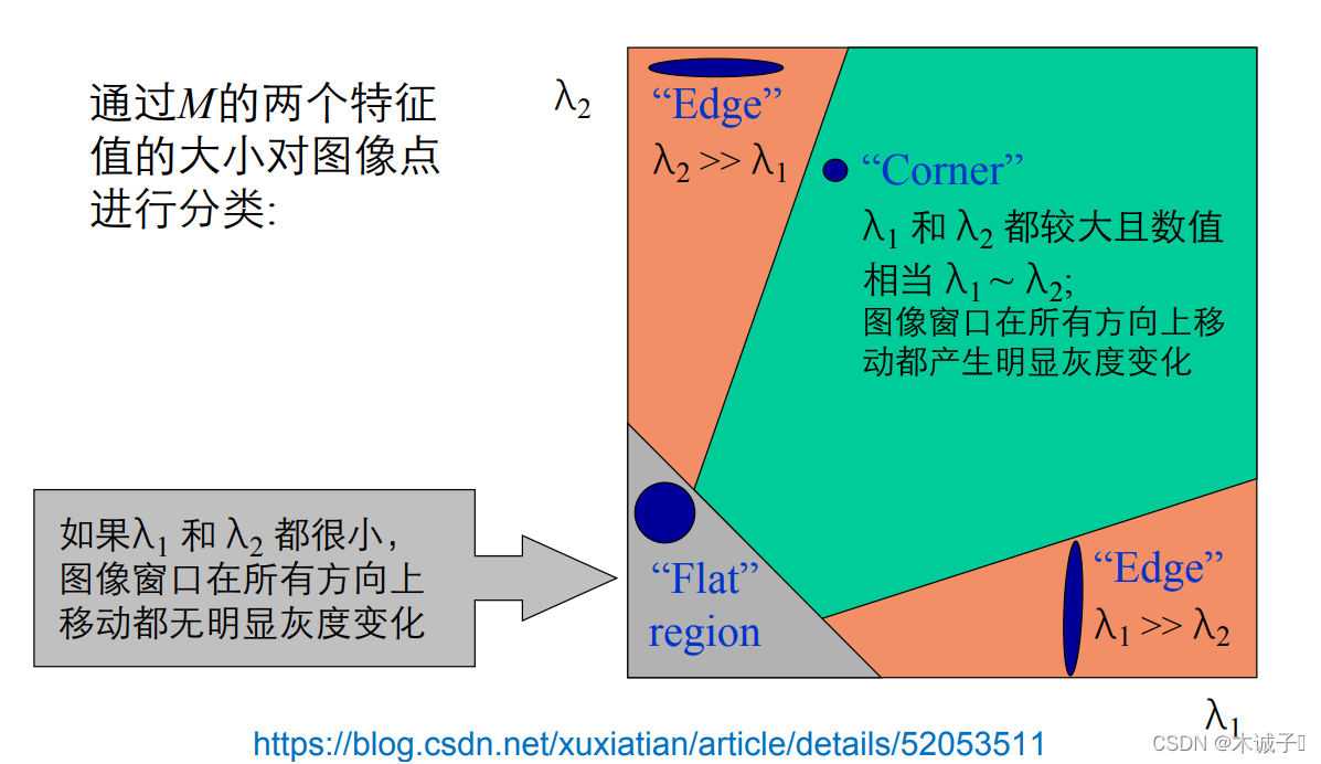 Harris 算子是一种简单的点特征提取算子,这种算子受信号处理中自相关函数的启发,给出与自相关函数相联系的矩阵M。M阵的特征值是自相关函数的一阶曲率,如果两个曲率值都高,那么就认为该点是特征点。为了消除噪声对于角点检测的影响,可以使用一个高斯滤波器来平滑图像。