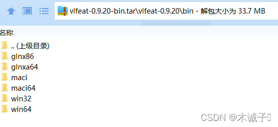 选择 vlfeat-0.9.20-bin.tar.gz?安装包下载,下载完成解压出来,找到bin目录下的win32文件夹,复制出来,放到你想放的位置(我放在了D:\VLfleat-bin,win32文件夹可改成你想要的名字,我改成win32vlfeat)