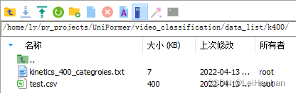 我们是不能用官网的test.csv和kinetics_400_categroies.txt的,这个需要根据自己的数据集生成。我写了个脚本生成好了,在地址一中的数据集中都有。