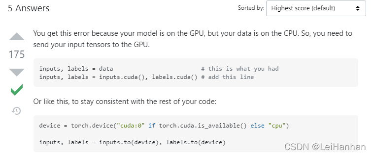 2.RuntimeError: Input type (torch.FloatTensor) and weight type (torch.cuda.FloatTensor) should be the same or input should