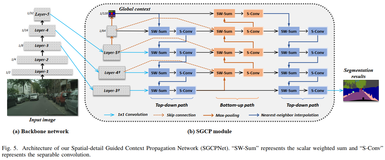SGCPNet提出了一种新的空间细节引导的上下文传播策略。它能有效地在全局上下文内重建丢失的空间信息,因此无需通过网络管道维持高分辨率特征图。