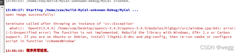 terminate called after throwing an instance of 'cv::Exception' ? what(): ?OpenCV(3.4.9) /home/xzw/Desktop/opencv-3.4.9/opencv-3.4.9/modules/highgui/src/window.cpp:641: error: (-2:Unspecified error) The function is not implemented. Rebuild the library with Windows, GTK+ 2.x or Carbon support. If you are on Ubuntu or Debian, install libgtk2.0-dev and pkg-config, then re-run cmake or configure script in function 'cvNamedWindow'