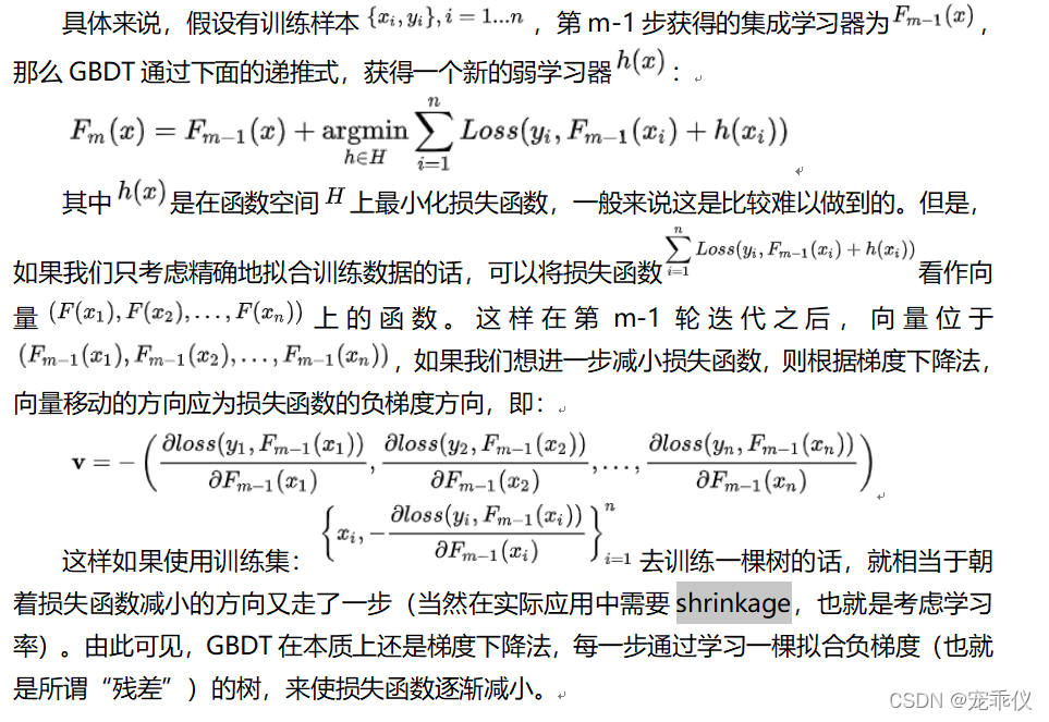 GBDT算法是是有boosting思想和决策树组成的,是一个由多个弱学习器组成的集成学习。GBDT算法的每一个弱学习器模型的建立是为了消除上一次的残差(使用函数空间梯度下降的方法)