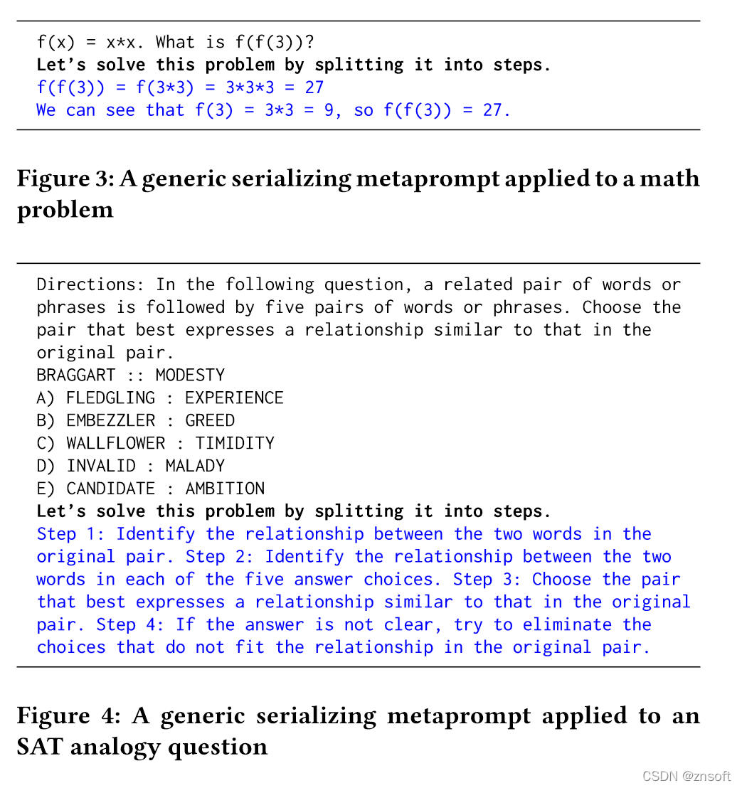 一个元提示可以是像 "这个问题要求我们 "这样的短语,它通过提示问题的意图,为解决这个问题的程序的连续解释奠定基础。或者,隐喻可以采取填空模板的形式,按照预先确定的程序限制回答,但允许模型填写问题的具体细节。