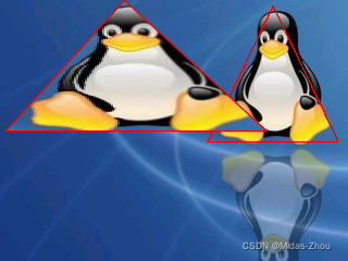 /* 6. 三角形左侧部分的映射 Left part of the triangle: traverse pixels and map to get color value. */