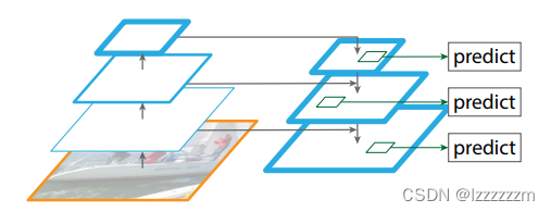 比如说,针对目标分类任务,可以把每一层的特征图都输出去,去预测空间大小不一样的目标,如图(a)中一样。