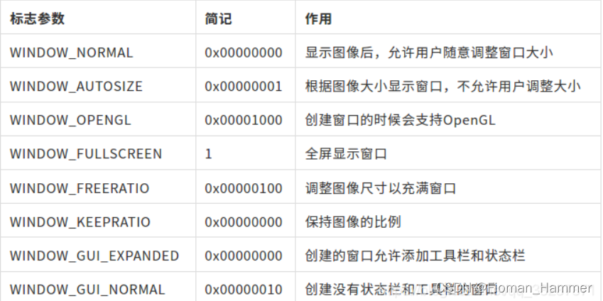 默认情况下函数加载的标识参数为 WINDOW_AUTOSIZE|WINDOW_KEEPRATIO|WINDWO_GUI_EXPANDED