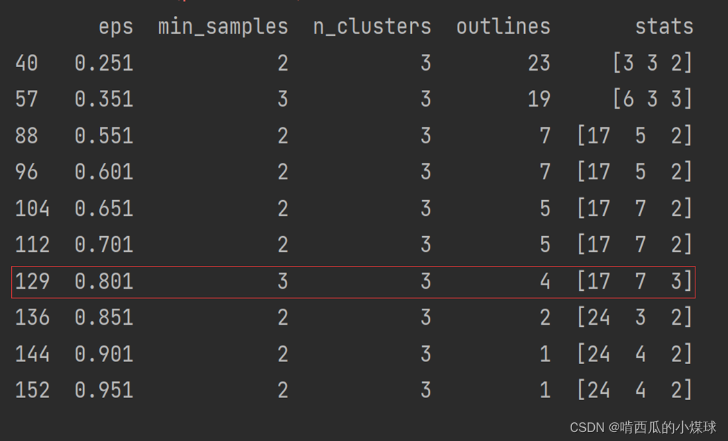 上面这句是用来统计不同参数组合下的每个簇的样本个数
