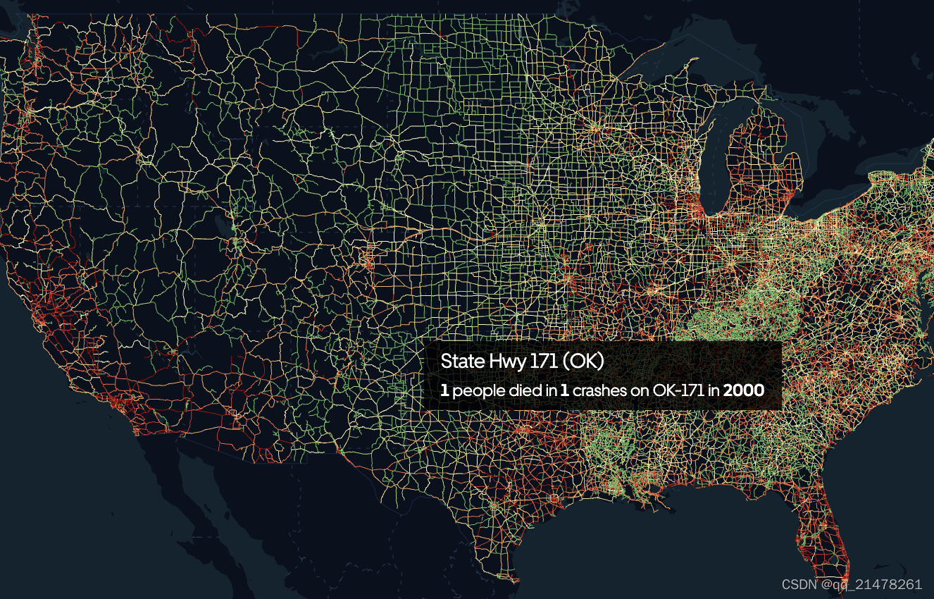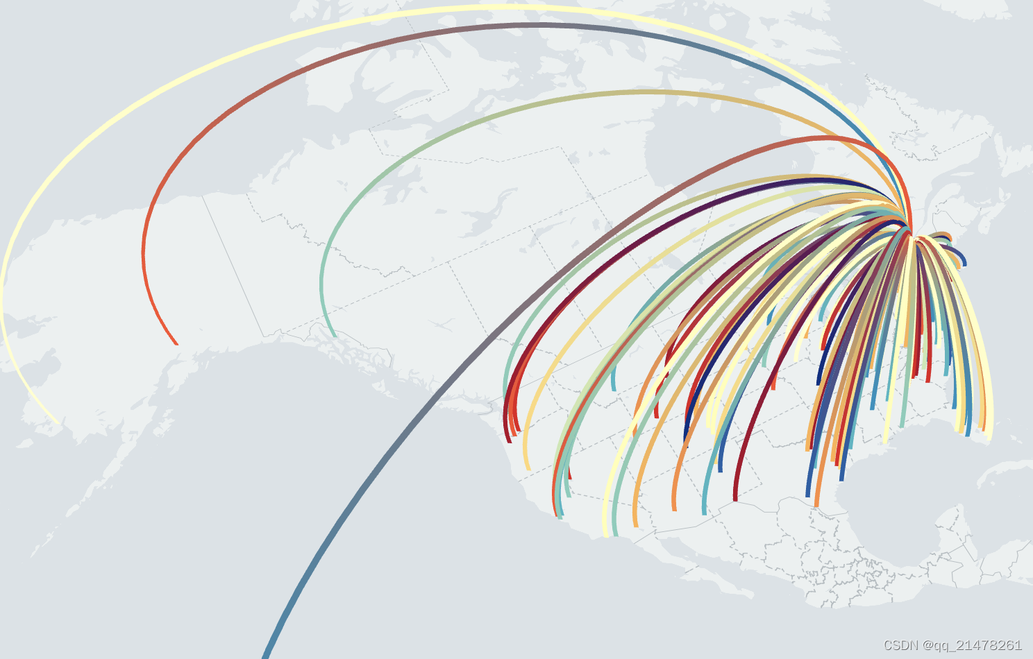 kepler.gl的介绍: 11个空间地理数据可视化利器,但是kepler.gl只是deck.gl的一个阉割版封装,功能受限。 本文介绍deck.gl的Python版本pydeck,基于deck.gl和知名的 Mapbox GL;pydeck支持 GPU并行加速,可实现数百万数据点实时高效渲染,在交通流量、大规模空间轨迹分析、供需预测等领域优势明显。- 某一时刻,世界空中交通情况