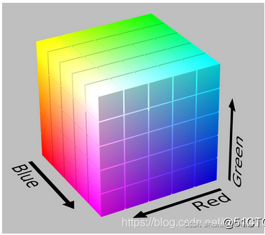 RGB色彩空间还可以用一个三维的立方体来描述.当三基色分量都为0(最弱)时,混合为黑色光,当三基色都为k(最大,值由存储空间决定)时混合为白色光.