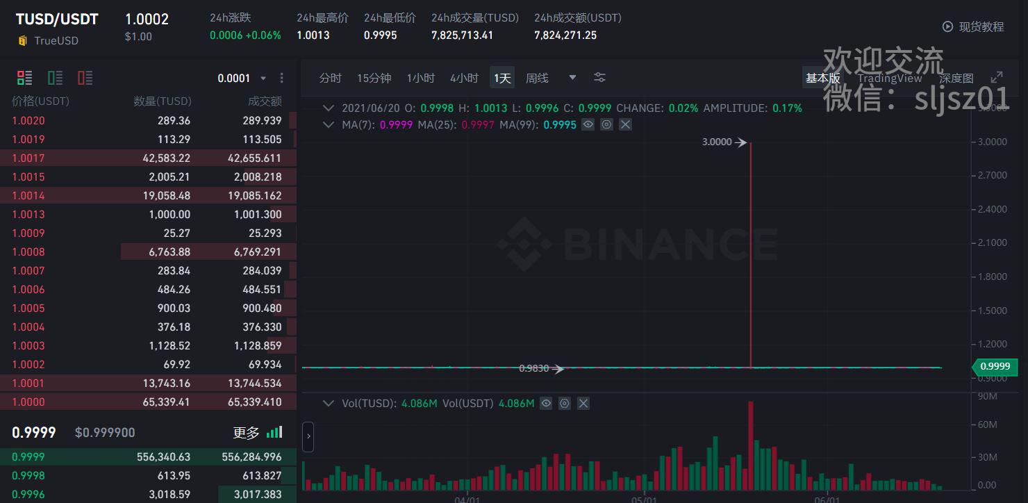 稳定币种数量增加,带来了稳定币配对的交易机会,我们以币安和火币交易所为例,其中,币安上线了BUSD/USDT、SUSD/USDT、TUSD/USDT、USDC/USDT、TUSD/BUSD、USDC/BUSD等多个稳定币货币对。