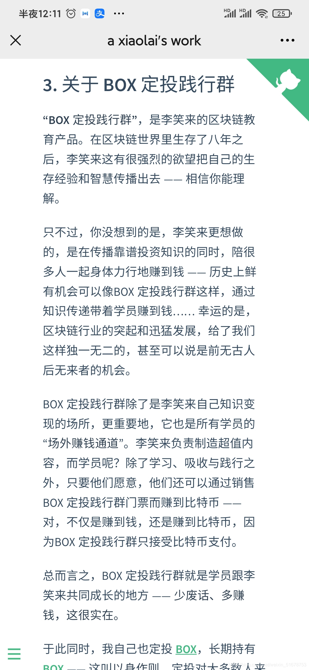 李笑来老师的BOX定投践行群现在已经改名为《定投人生课堂》,为表达方便,以下都使用践行群这个名称。