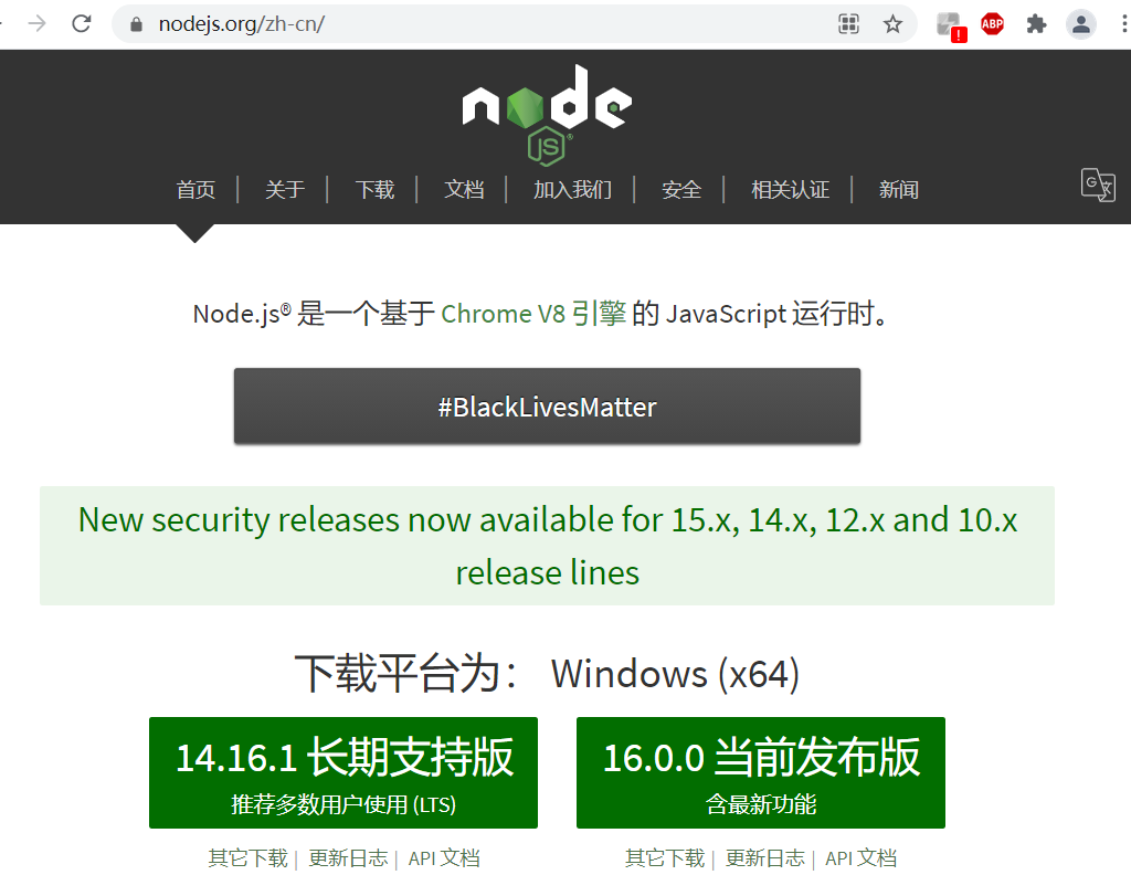 Truffle运行在NodeJS环境,所以要先安装Nodejs,下载地址:https://nodejs.org/zh-cn/
