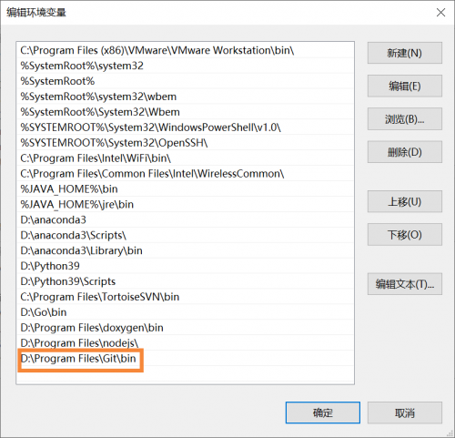 在系统变量的PATH里面添加Git的bin目录的路径。