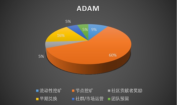 ADAM的挖矿产出将分阶段进行。第一阶段的总奖励为 1200 万 ADAM。每个后续阶段的总挖矿奖励将减少 20%。1200万ADAM用完后,进入第二阶段。第二阶段的奖励总量比第一阶段减少20%,为960万;该规则将在后期继续,直到所有 6000 万 ADAM 被挖出。