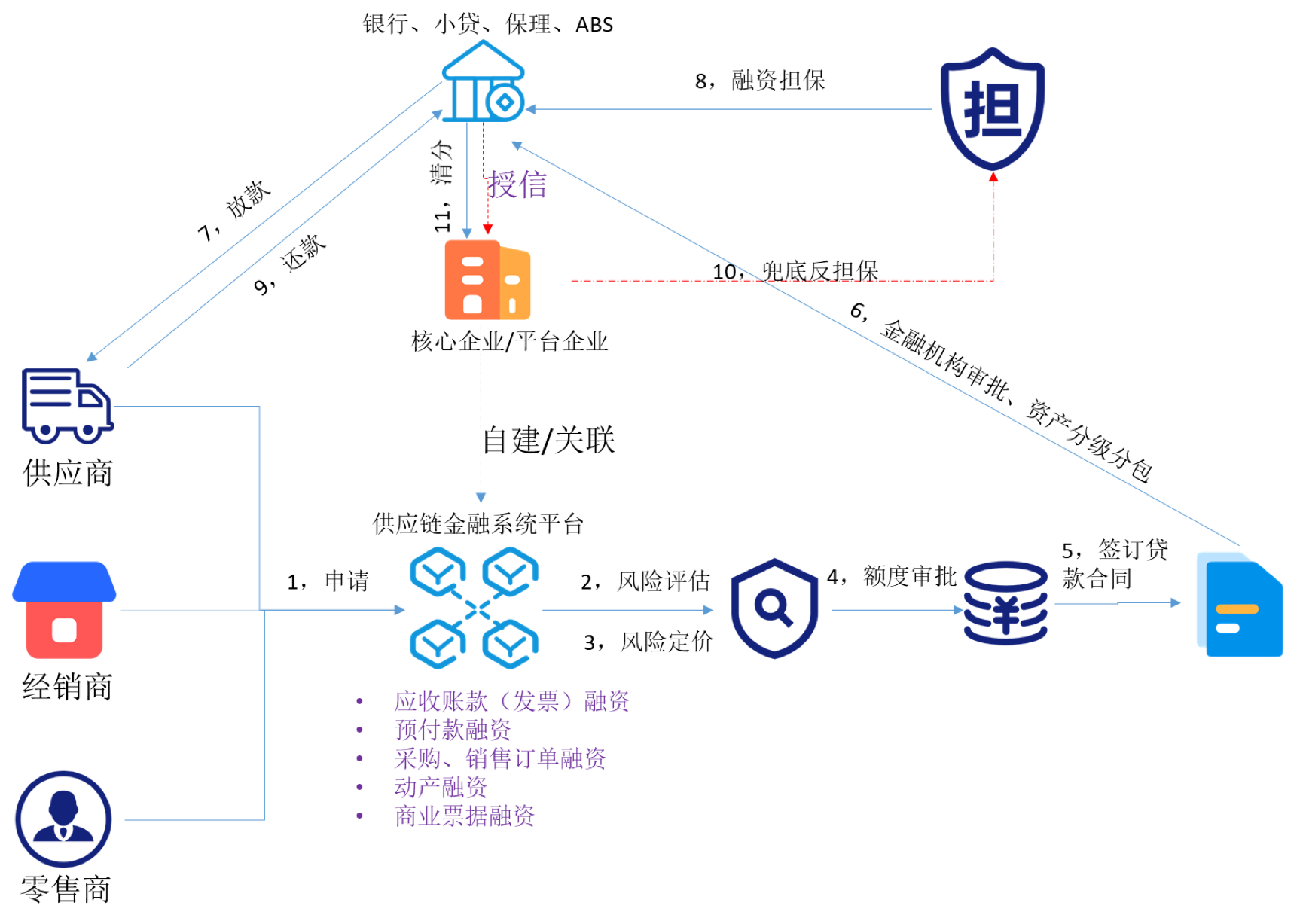 ? ? ? 当前我国中小微企业承担了全国70%的就业和80%的税收,中小微企业为国家的经济建设做出巨大的贡献,但是他们的企业融资一直存在难、贵的问题,虽然在国家意志推动下进行定向的降息减税,还会给银行体系下达相应的指标任务,更甚对一些阻碍相关领导干部进行问责。但是这一系列的措施下只是一定程度上缓解问题,能够从银行体系中贷款的方式绝大多数都是不动产形式的抵押贷款。又因广大的中小微企业的资产70%都是应收账款和存货,但又因应收账款和存货等经营性的资产并没有被纳入《中华人民共和国担保法》合法担保物范围里,因此,围绕核心企业发展的中小微企业的“供应链金融”成为解决部分企业的融资的方案。