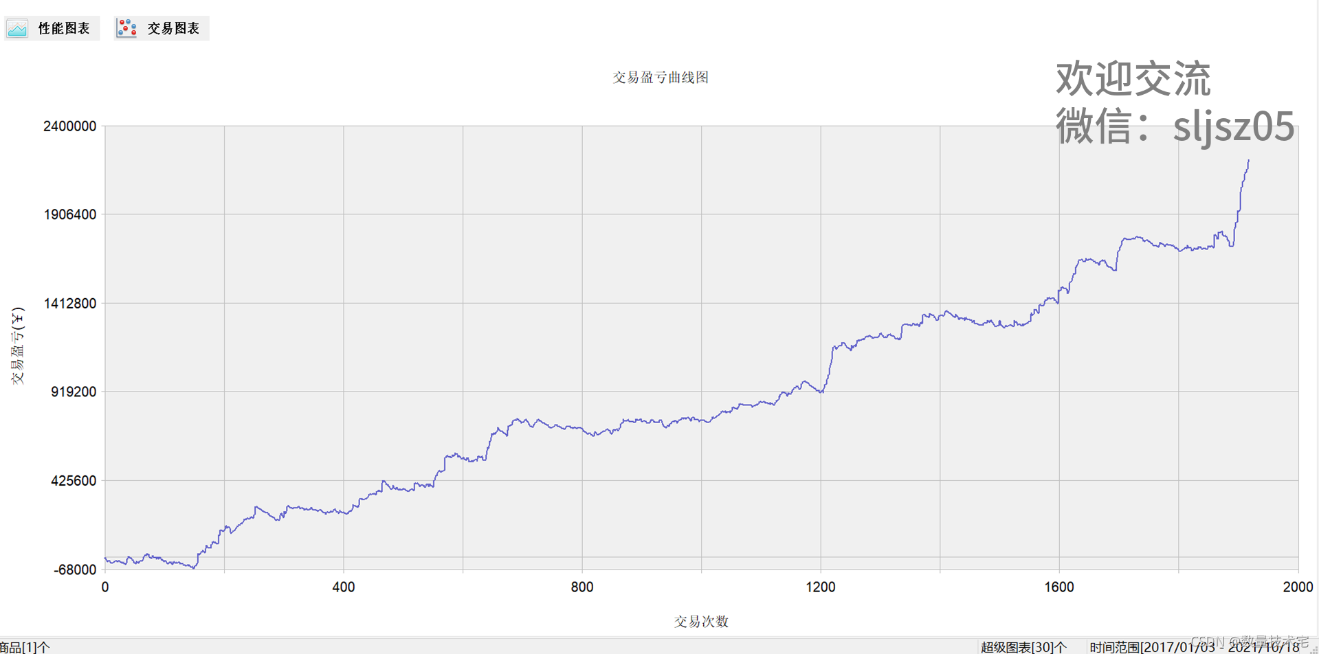 测试周期从2017年1月1日(起始时间不变)到2021年10月18日,依然是30个主流品种,测试成本不变,也是双边万2+2滑点。下面是最新的绩效: