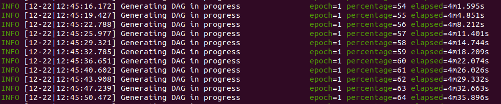 会先出现上述情况,为挖矿初始化,当参数percentage的值到达100后,就会正式开始挖矿。