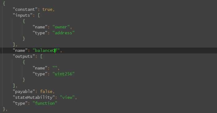 ABI文件包括了智能合约的输入与输出格式(其中name对应合约function的名字)