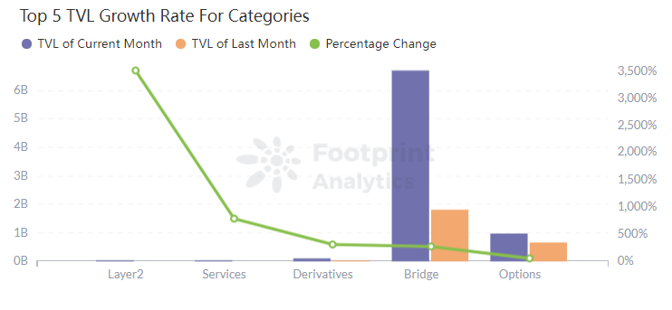 Footprint Analytics - Top 5 TVL Growth Rate For Chains