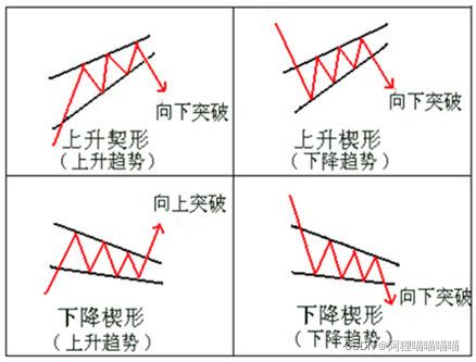 - 楔形形态与旗形形态相类似,都属于短期内的调整形态。从形态上看,两种图形都像挂在旗杆的旗子,只是旗形为平行四边形,而楔形则为上下两条颈线,会在短期内交叉,形成一扁长的三角形,形如三角旗。