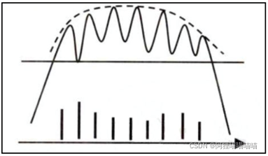 - 圆弧顶:圆弧顶是一种非常扎实的反转形态,在实战中运用价值非常高,圆弧顶形态代表着趋势的很平缓的、逐渐的变化,在顶部交易量随着市场的逐步转向而收缩,当新的价格方向占据主动时,又相应地逐步增加。该形态宛如一根月弧状的曲线,称为圆弧顶。
