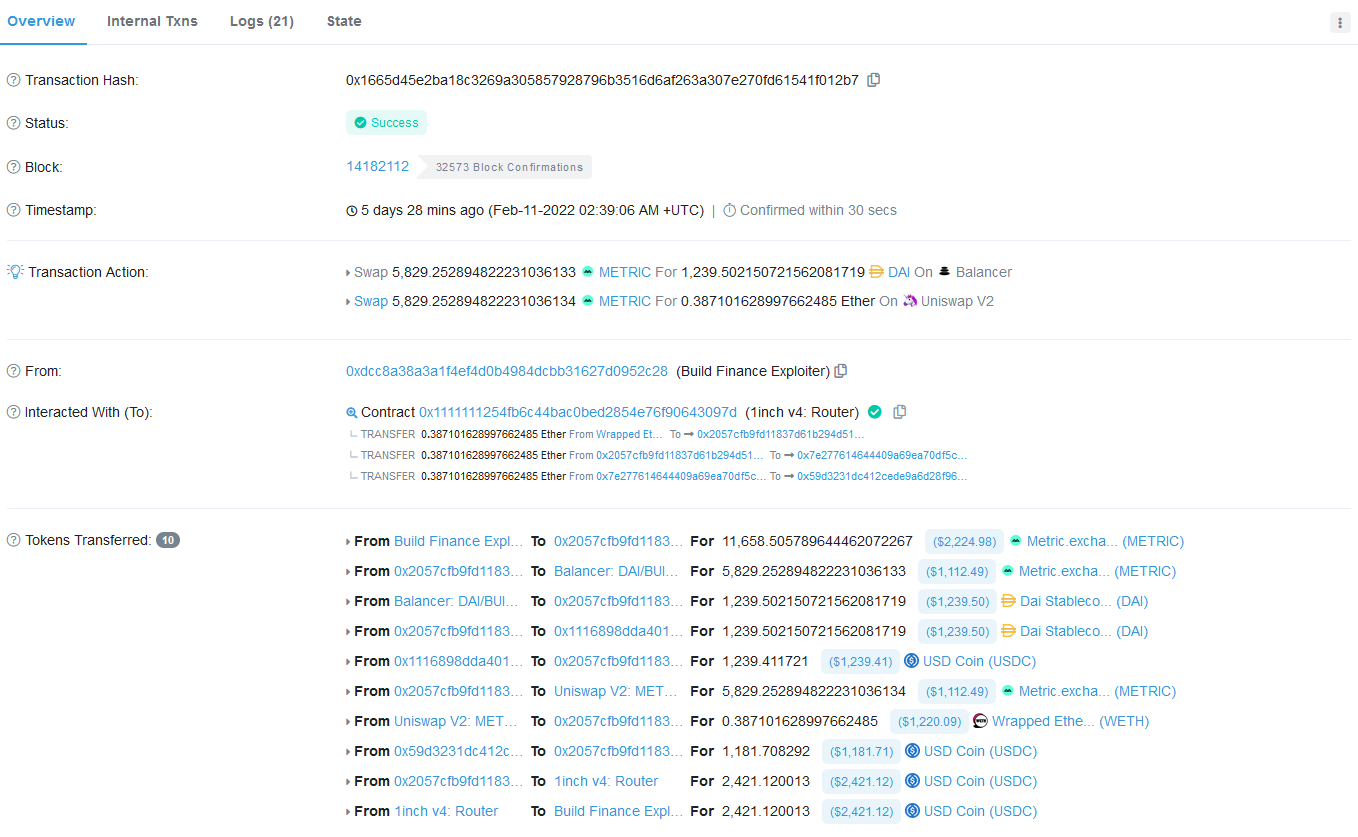 随后又通过治理合约控制平衡池,耗尽包括13万METRIC代币在内的其他数字资产: