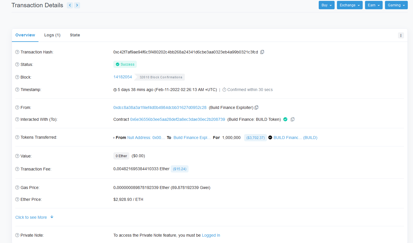 风投 DAO 组织 Build Finance 在社交媒体发文表示,该项目遭遇恶意治理攻击,攻击者恶意铸造了110万枚BUILD并抛售套利。知道创宇区块链安全实验室第一时间对本次事件深入跟踪并进行分析。