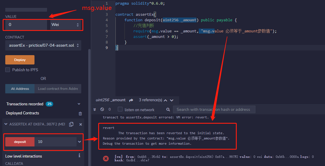 require(msg.value == _amount, "msg.value 必须等于_amount参数值");
