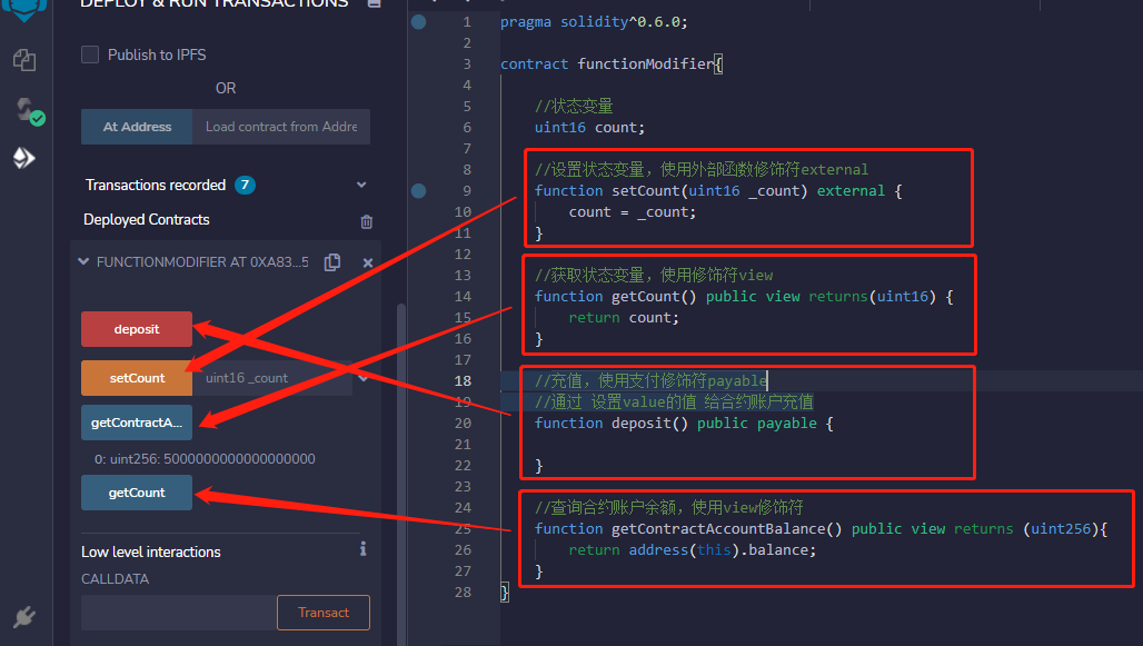 以上在Remix可以看到不同修饰符对就的颜色也不一样: