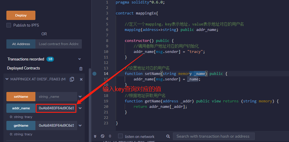 //定义一个mapping,key表示地址,value表示地址对应的用户名
