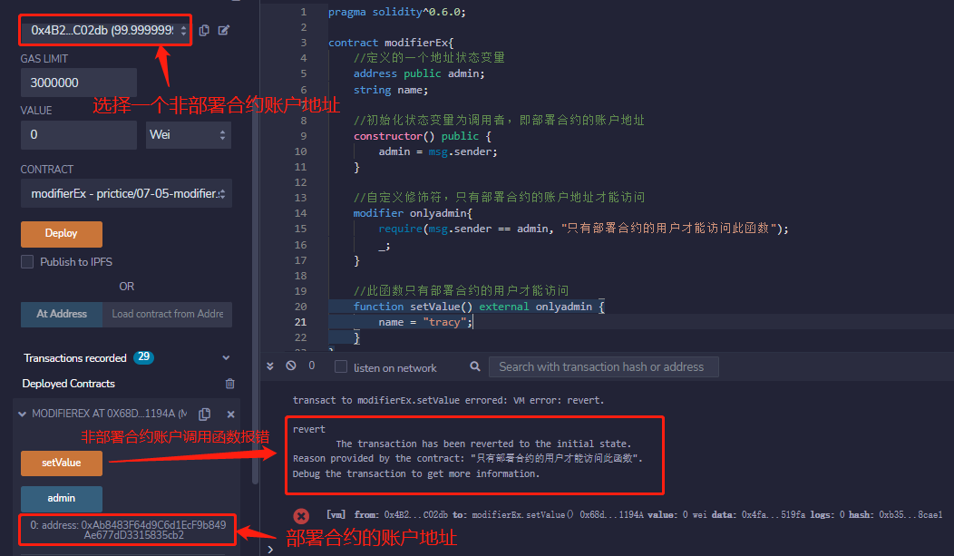 require(msg.sender == admin, "只有部署合约的用户才能访问此函数");