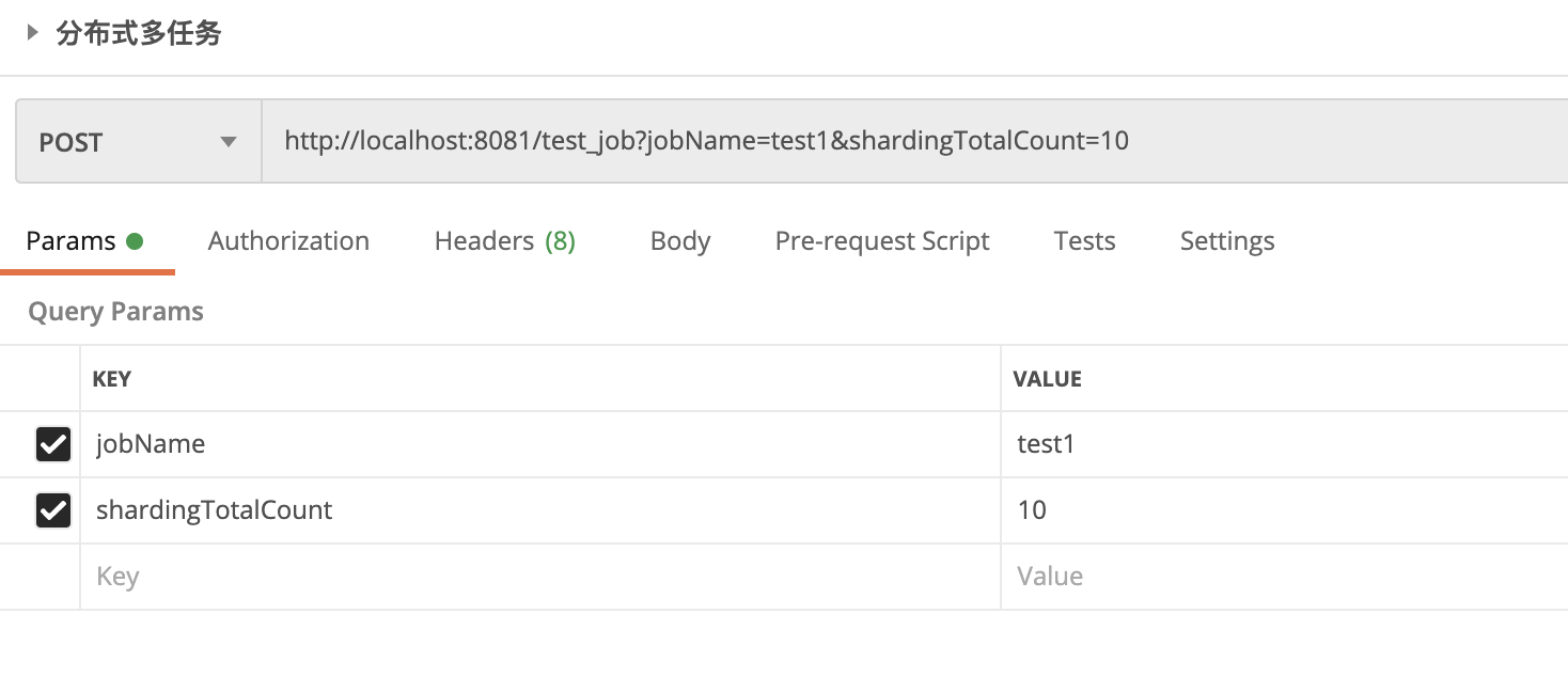 public String testJob(@RequestParam("jobName") String jobName, @RequestParam("shardingTotalCount") int shardingTotalCount) {