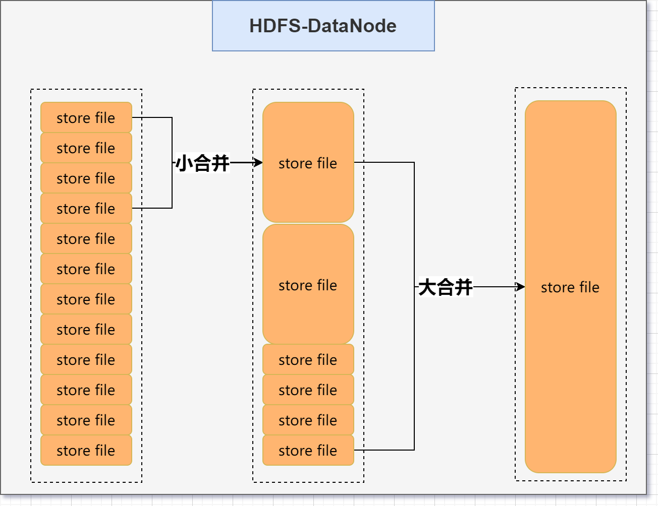 - 全局的所有store file文件的合并。