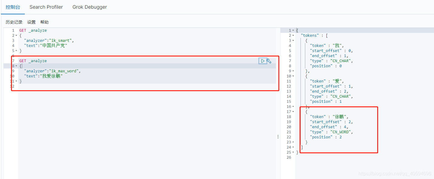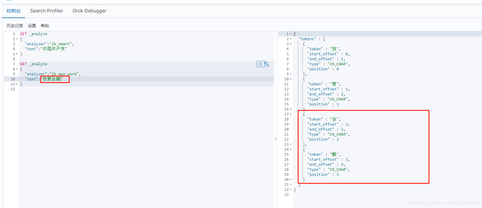 现在有一个问题,如果我们输入“我爱徐鹏”,我们要把徐鹏作为一个整体,但是因为默认汉字是单个拆分,不符合我们的需求。我们需要自定义“徐鹏”,让es能够将其视为一个整体。?