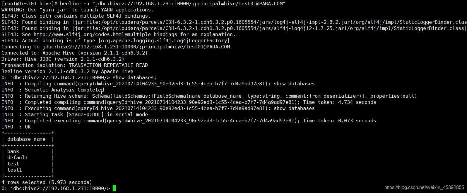 ?beeline -u "jdbc:hive2://192.168.1.231:10000/;principal=hive/test01@PARA.COM"这是连接命令