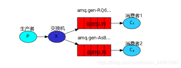 3.消费者通过队列消费消息(每一个消费者都绑定一个临时队列)