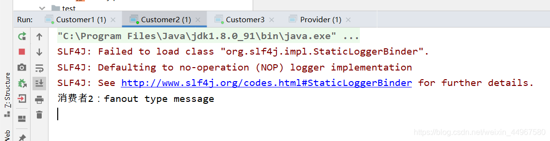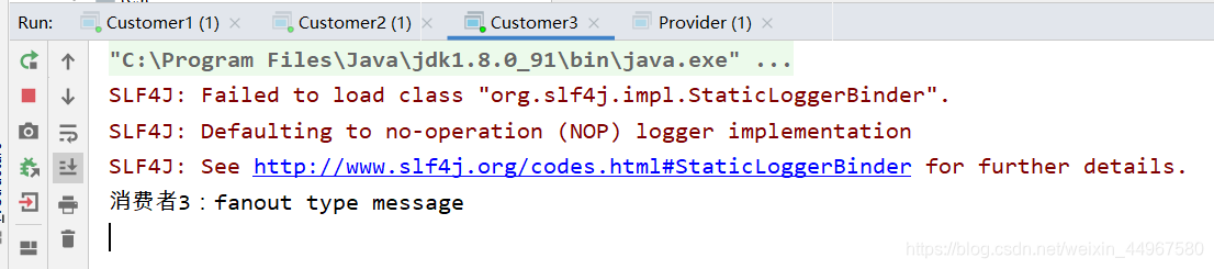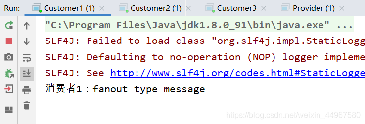 channel.basicPublish("logs","",null,"fanout type message".getBytes());