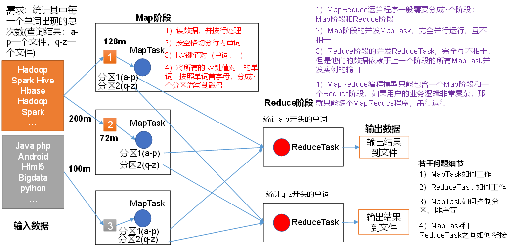 map阶段的整个数据处理流程。 - (3)ReduceTask:负责