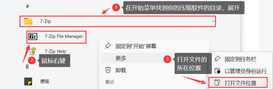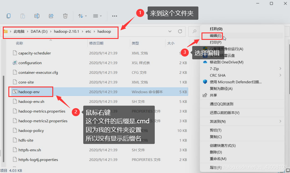 解压hadoop的压缩包需要管理员权限,推荐使用WinRAR,7-Zip或者Bandizip解压,因为我试过像2345好压和360压缩都解压不了,我这里用的是7-Zip